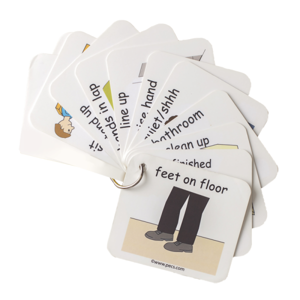 The images are from our Pics for PECSโข collection and are printed on virtually indestructible plastic and joined on a ring. We include one blank card for you to add a direction or to store tokens. Add a lanyard and wear this around your neck for quick, always-available access.
